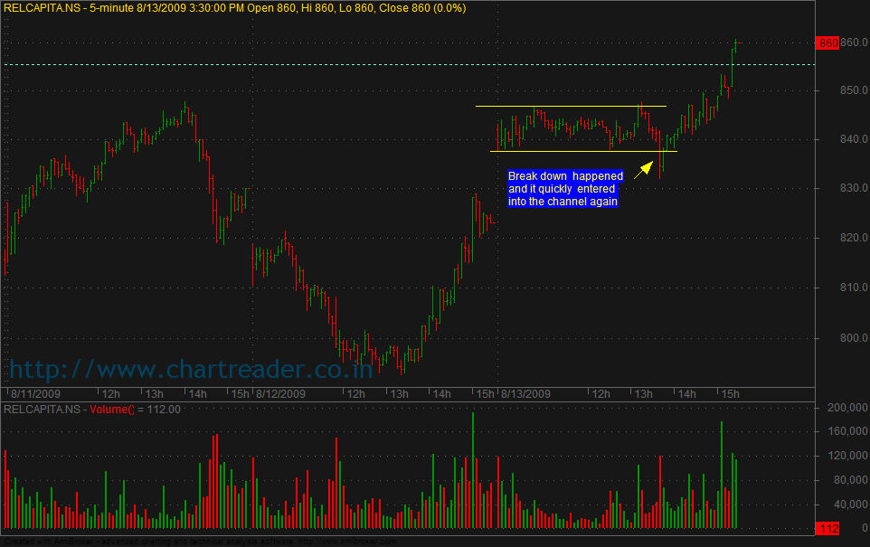 Relcap gave a break down and it triggered stop loss at 834. It was a spiky reversal so I have considered it as error and reentered at Rs.842