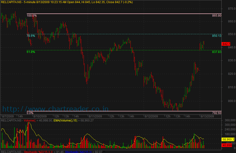 Relcap gave a break down and it triggered stop loss at 834. It was a spiky reversal so I have considered it as error and reentered at Rs.842